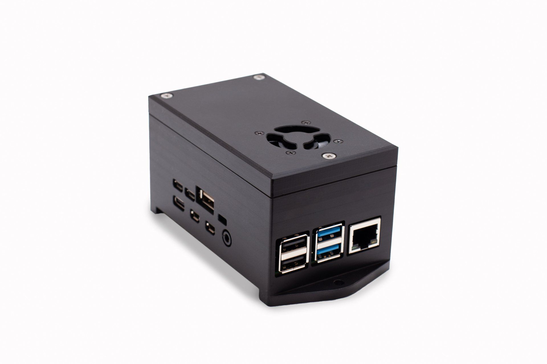 - Stabile Befestigung des Raspberry Pi 4 von unten mittels vier Schrauben